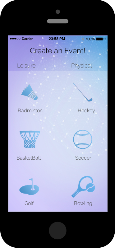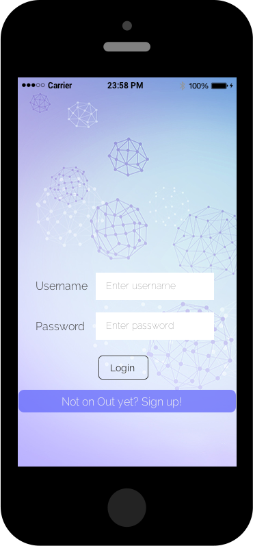 “Out” is a social hangout application being developed by students at my university. Users post about events happening and other users in the vicinity can touch base with them. I designed the color schemes, layout and screen mockups for them. The spheres and links design on the start screen captures the essence of the project – the spheres represent people and links represent the ways in which they meet and interact with one another. We worked around a couple of palettes until everyone immediately fell for the current Lavender, Blue and Grey color scheme!